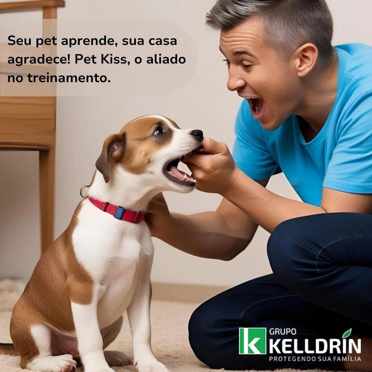 O Pet Kiss Educador de Mordida da Kelldrin, fabricante referência em produtos veterinários no Brasil, é a solução profissional para corrigir comportamentos destrutivos de cães e gatos. Com fórmula exclusiva de sabor amargo intenso, este spray educativo protege seus móveis, calçados, plantas e objetos pessoais de mordidas e mastigações indesejadas.