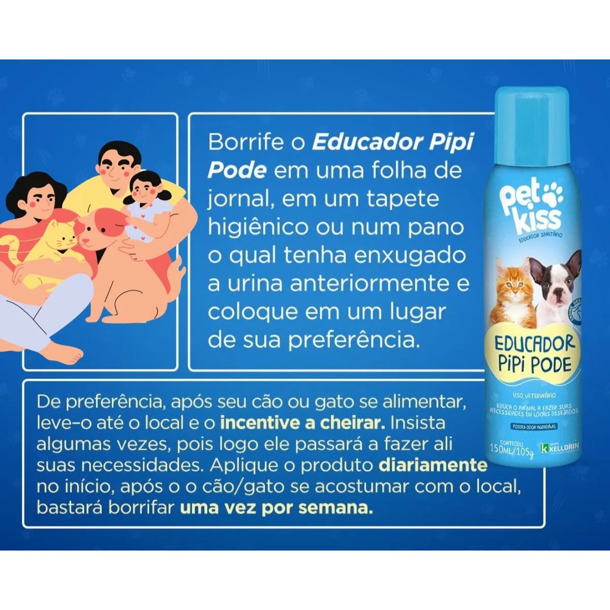 O Pet Kiss Educador Pipi Pode da Kelldrin é a solução definitiva para ensinar seu cão a fazer as necessidades no lugar correto. Desenvolvido com atrativos naturais específicos, este educador sanitário possui fórmula exclusiva que estimula o comportamento natural de marcação territorial, tornando o adestramento higiênico muito mais rápido e eficiente.