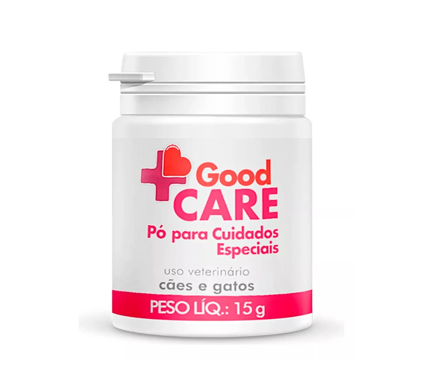 Pó para Cuidados especiais Mundo Animal Good Care para cães e gatos indicado como restaurador temporário para auxiliar no corte das unhas de cães e gatos.