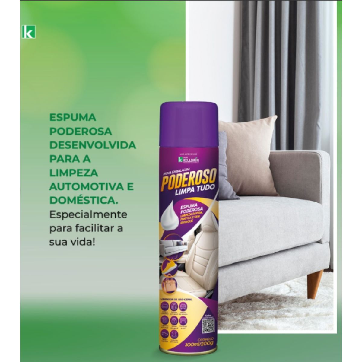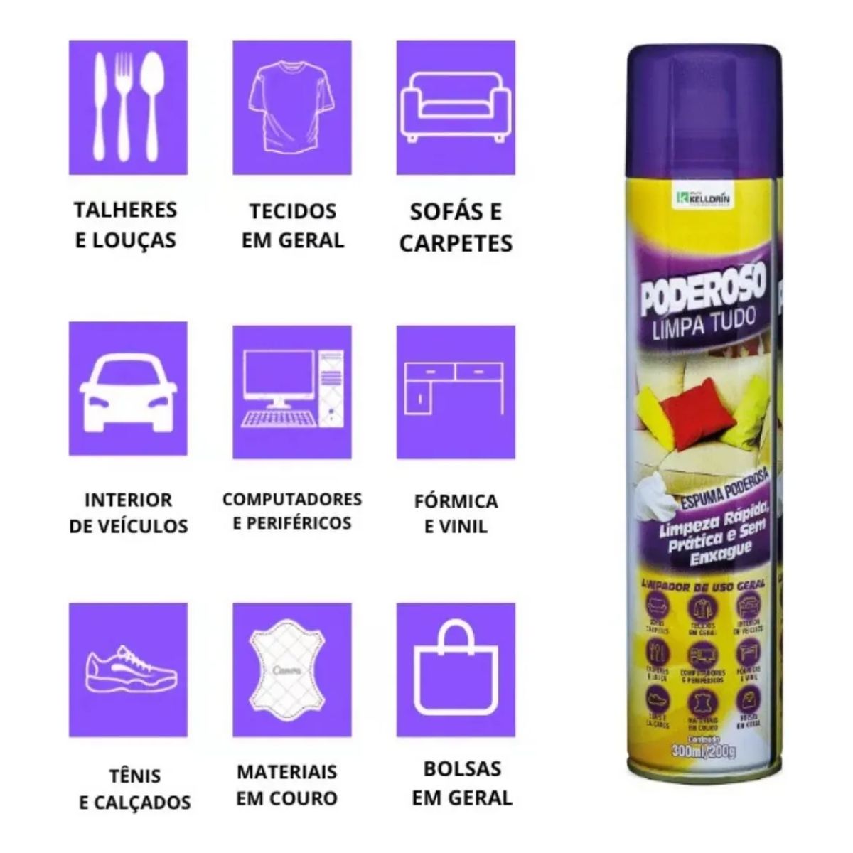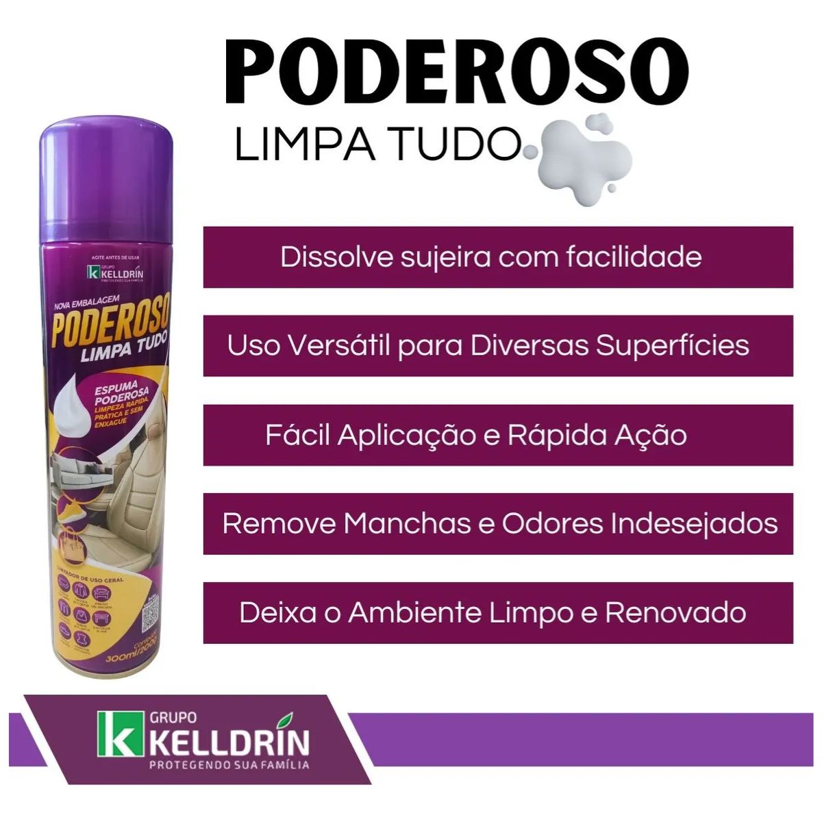 Espuma Limpa Tudo Poderoso Kelldrin – Limpeza prática, rápida e sem enxágue