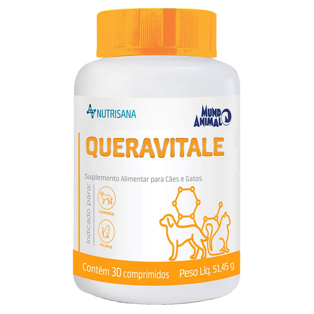 Suplemento vitamínico e mineral para a pele e a pelagem, indicado para cães e gatos. O suplemento Nutrisana Queravitale apresenta uma formulação balanceada que dá suporte nutricional a animais com queda de pelo devido à falta de nutrientes.