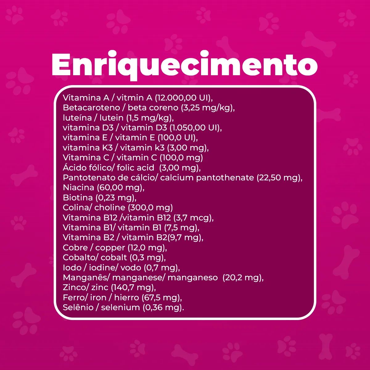 • Vitaminas e minerais essenciais para pelagem brilhante