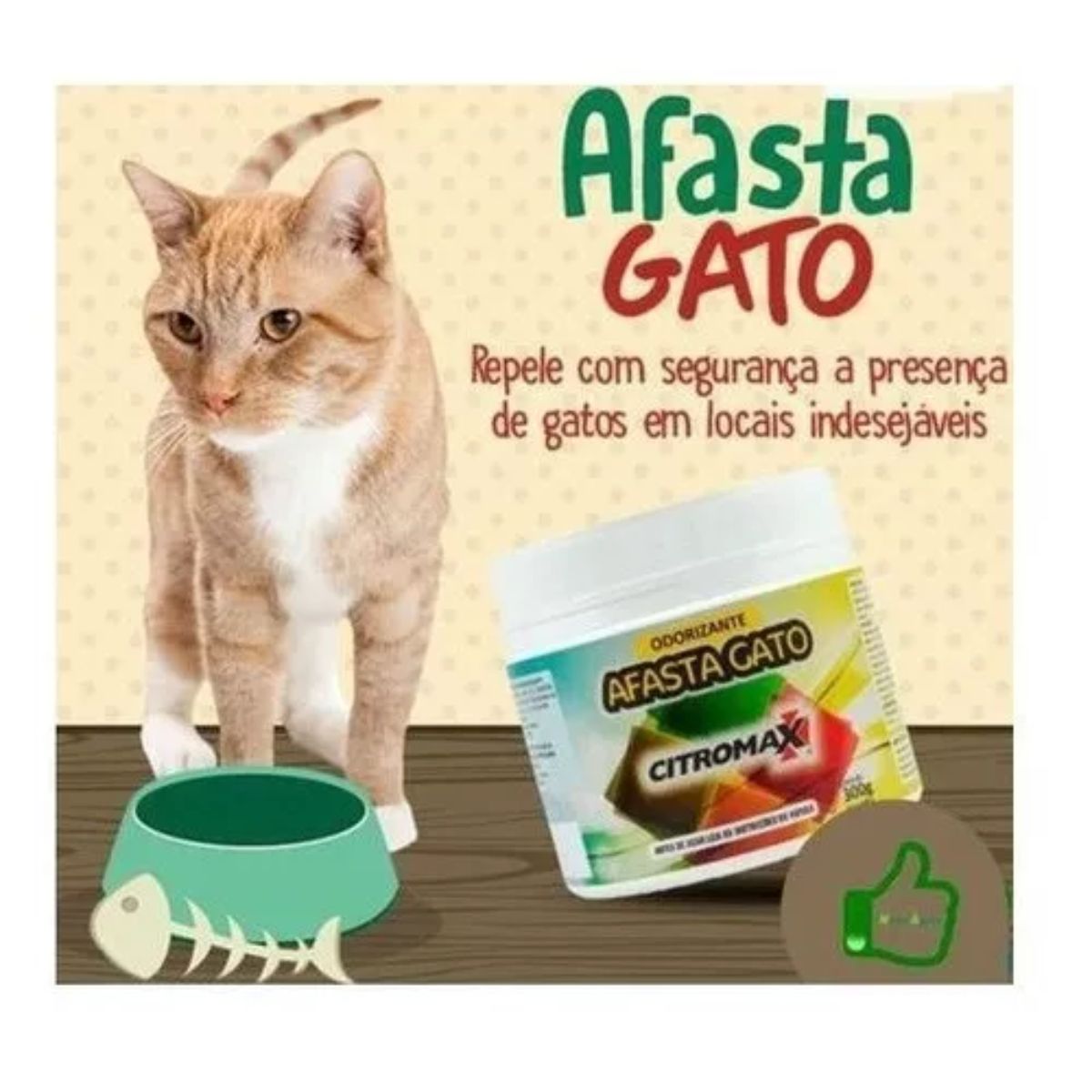 Afasta Gato Citromax 300g é um repelente natural que ajuda a afastar gatos de áreas indesejadas sem causar danos aos animais. Sua fórmula contém ingredientes vegetais aromáticos e granulado de amido, que mascaram as marcações territoriais dos felinos. Seguro para cães, é ideal para uso em casas, pátios, muros e veículos.