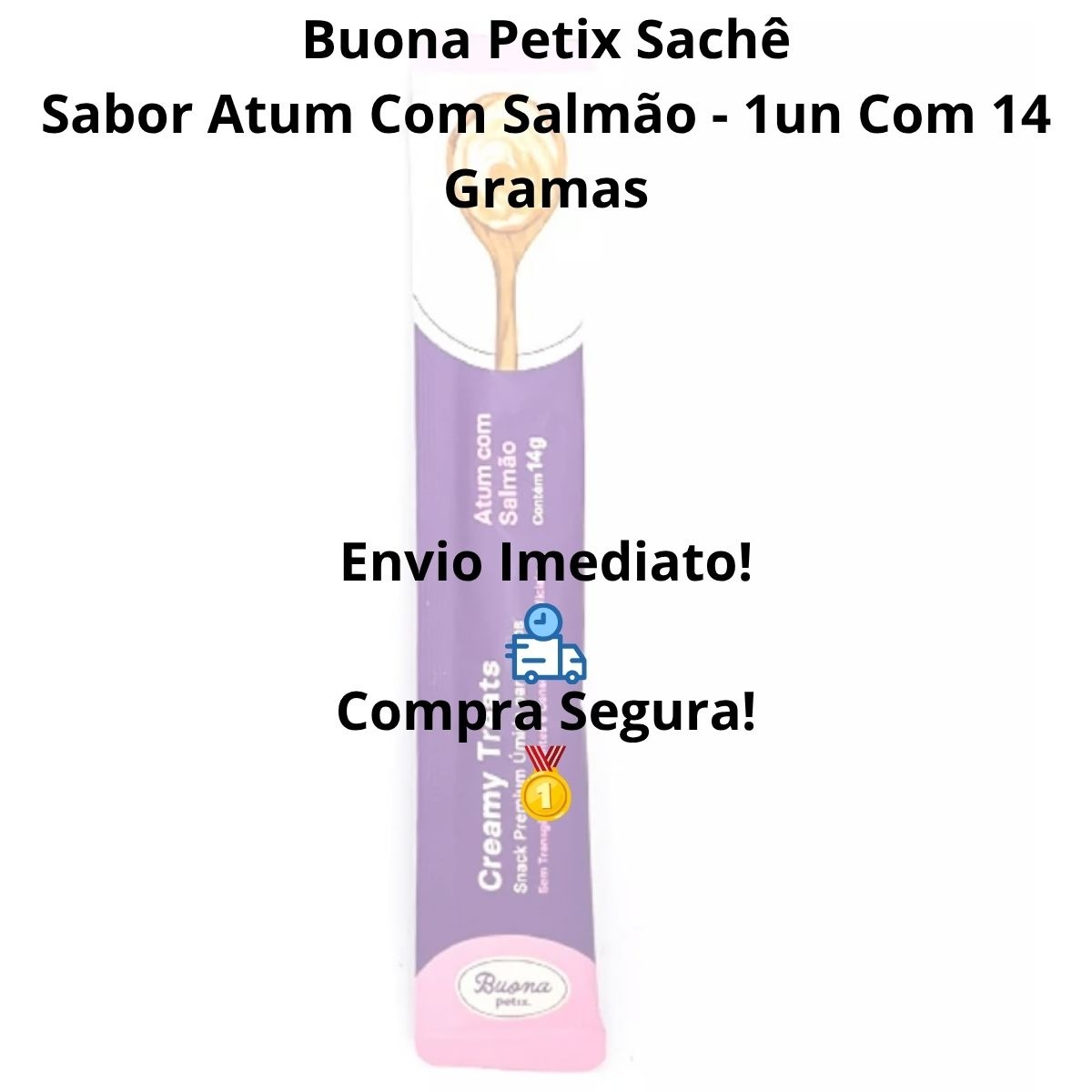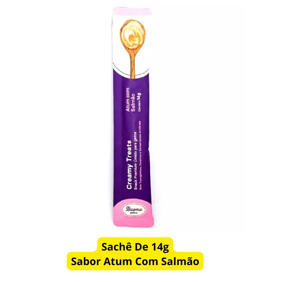 SNACK BUONA PETIX CREAMY SABOR ATUM COM SALMÃO PARA GATOS 14G