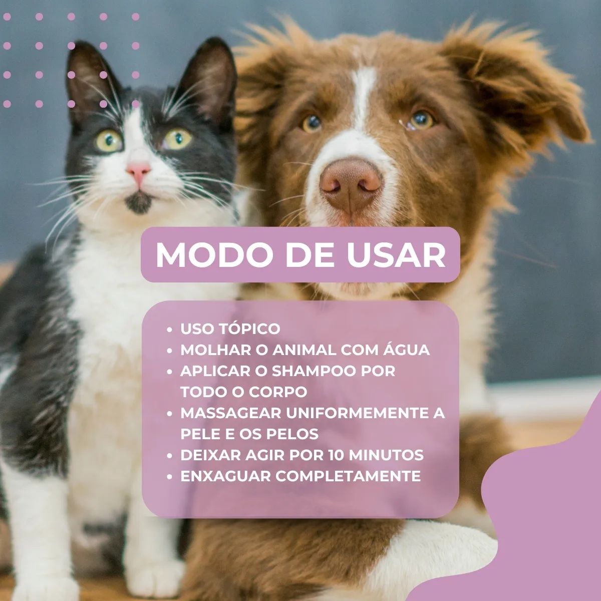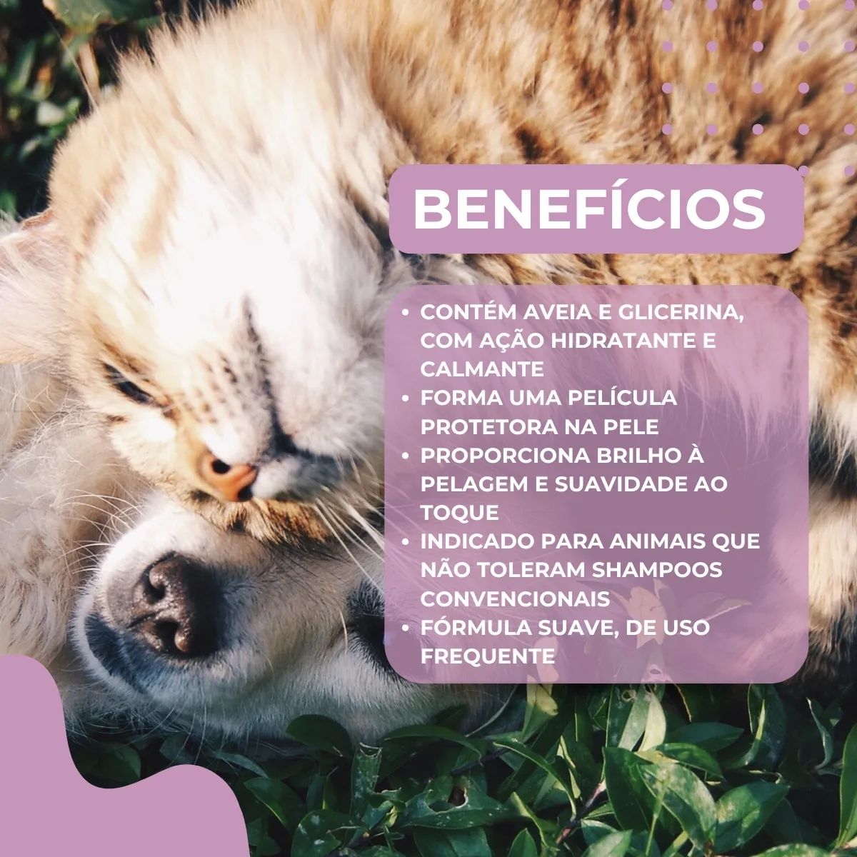 •Neutralização de Odores: Ajuda a eliminar maus odores, deixando seu pet com um cheirinho agradável e fresco.
