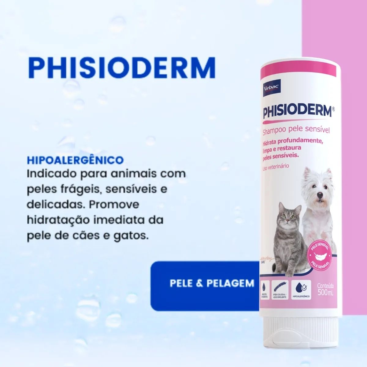Invista na saúde e no conforto do seu pet com o Phisioderm Shampoo Pele Sensível da Virbac.