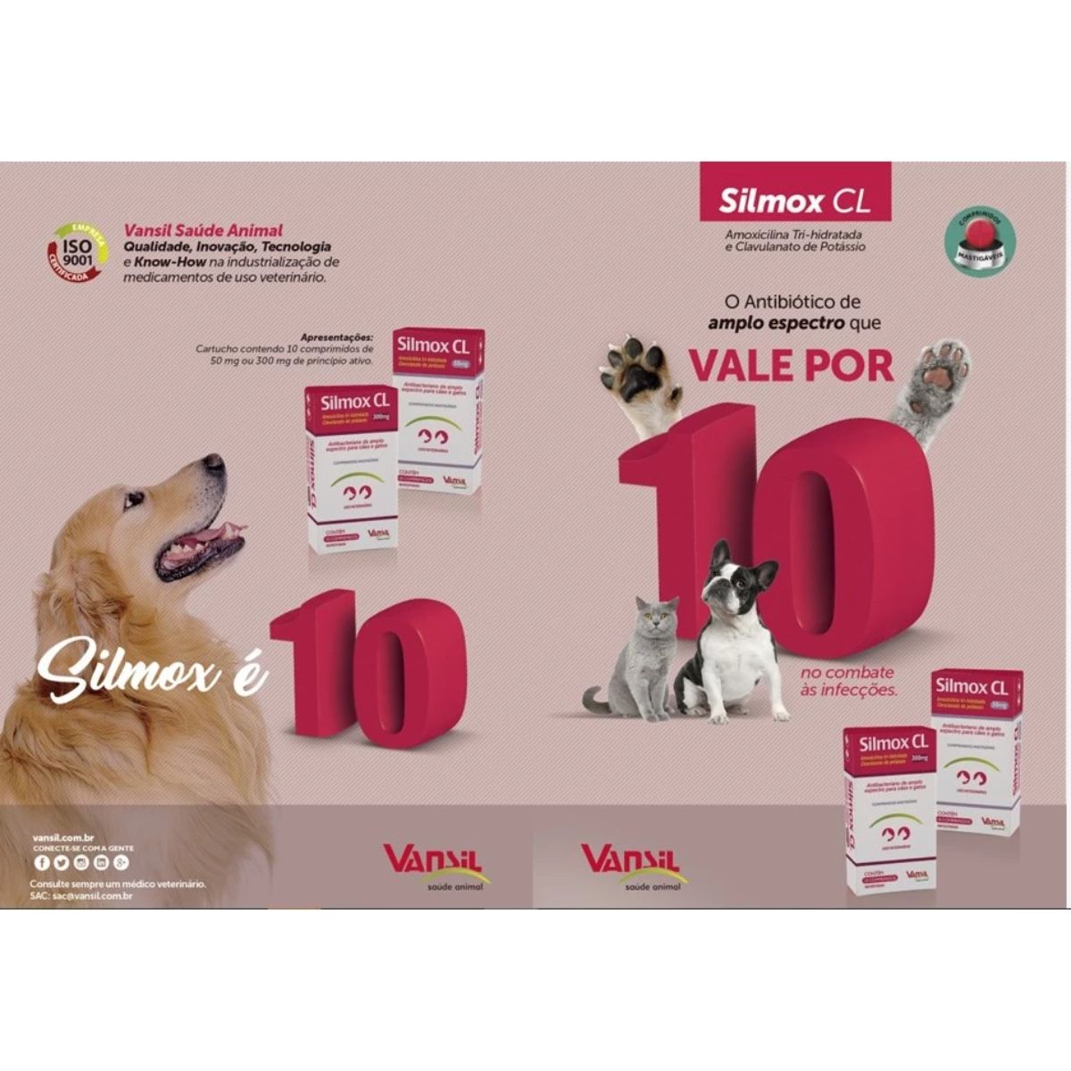 Silmox CL antibiótico à base de Amoxicilina Tri-hidratada e Clavulanato de Potássio que vale por 10 no combate à infecções em cães e gatos.