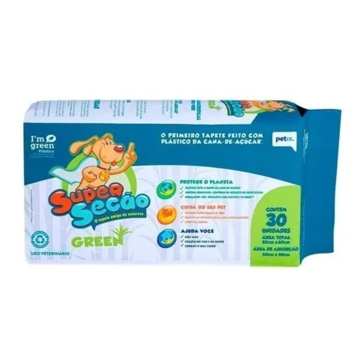 Super Secão Green é o primeiro tapete feito com plástico da cana-de-açúcar (Plástico feito com 51% de fonte renovável). De origem vegetal, a matéria-prima empregada no Tapete Higiênico Super Secão Green é renovável, pois utiliza em sua composição o polietileno verde I’m Green.