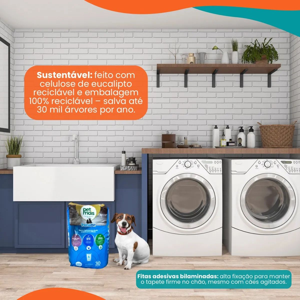 As fitas adesivas do TreinePet Petmais podem ser fixadas em qualquer superfície, no chão ou na parede para o caso dos cães machos, e o tapete tem uma suave fragrância de cheirinho de bebê, auxiliando na limpeza e organização da sua casa.