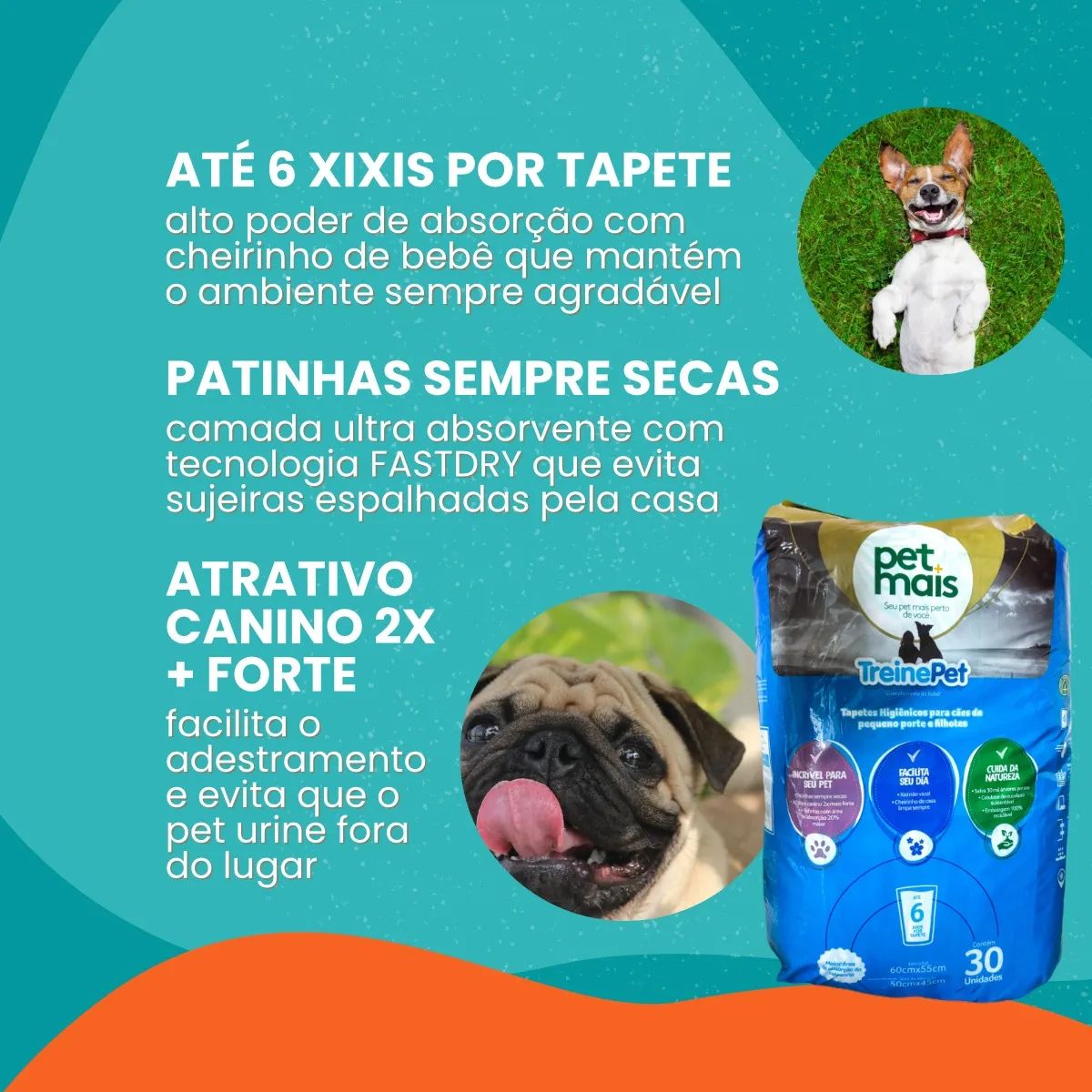 O Tapete Higiênico TreinePet Petmais foi desenvolvido para cães de portes mini e pequeno e cães filhotes. Fabricado com 6 níveis de absorção, proteção e retenção dos líquidos causadores de odor e mau cheiro, além de barreiras antivazamento.