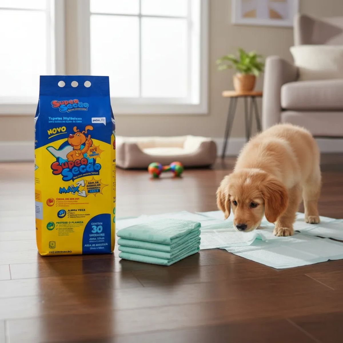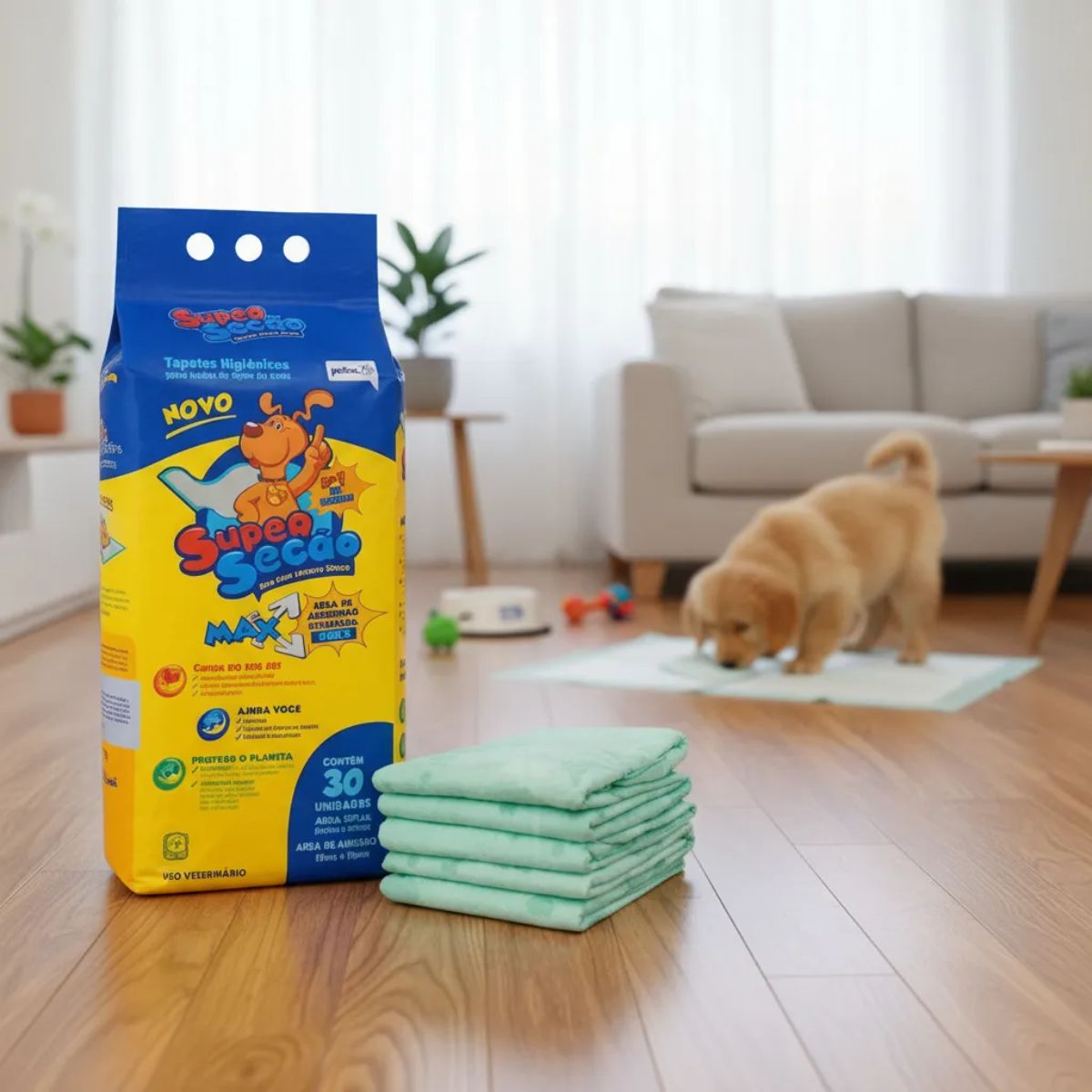 Cada pacote contém 30 tapetes higiênicos.