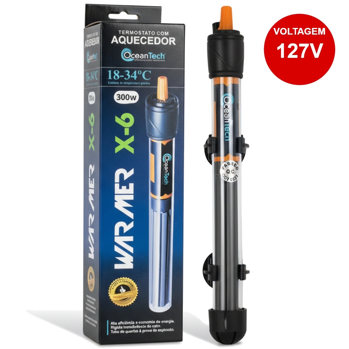 A Oceantech desenvolveu o War Mer X-6 pensando nas necessidades reais dos aquaristas brasileiros. Este aquecedor com termostato integrado oferece controle térmico profissional para aquários de água doce e salgada, garantindo o ambiente ideal para a saúde e bem-estar dos seus peixes.