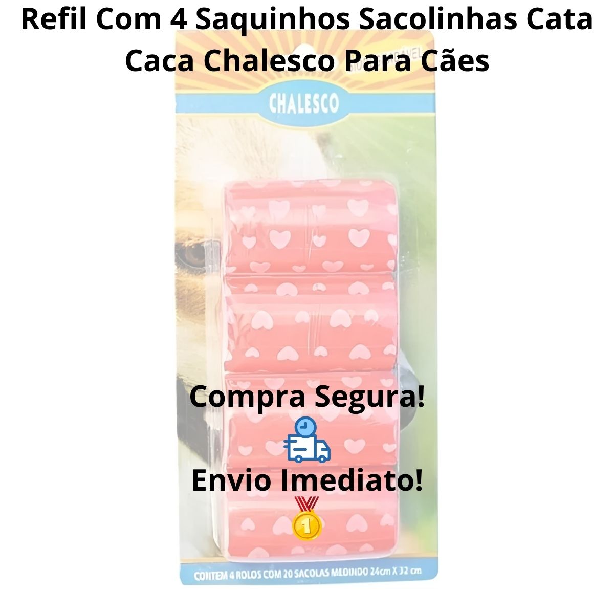 REFIL 4 ROLOS COM 20 SAQUINHOS BIODEGRADAVEIS CATA CACA – CHALESCO