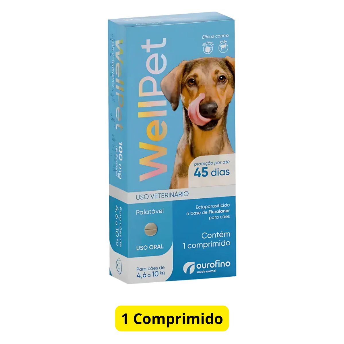 WELLPET 100MG – ANTIPULGAS E CARRAPATOS PARA CÃES DE 4,6 A 10KG