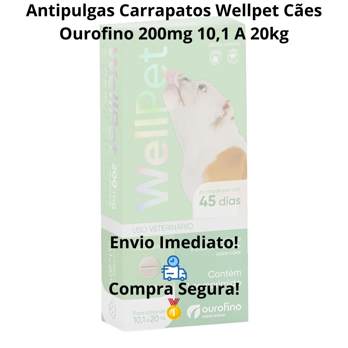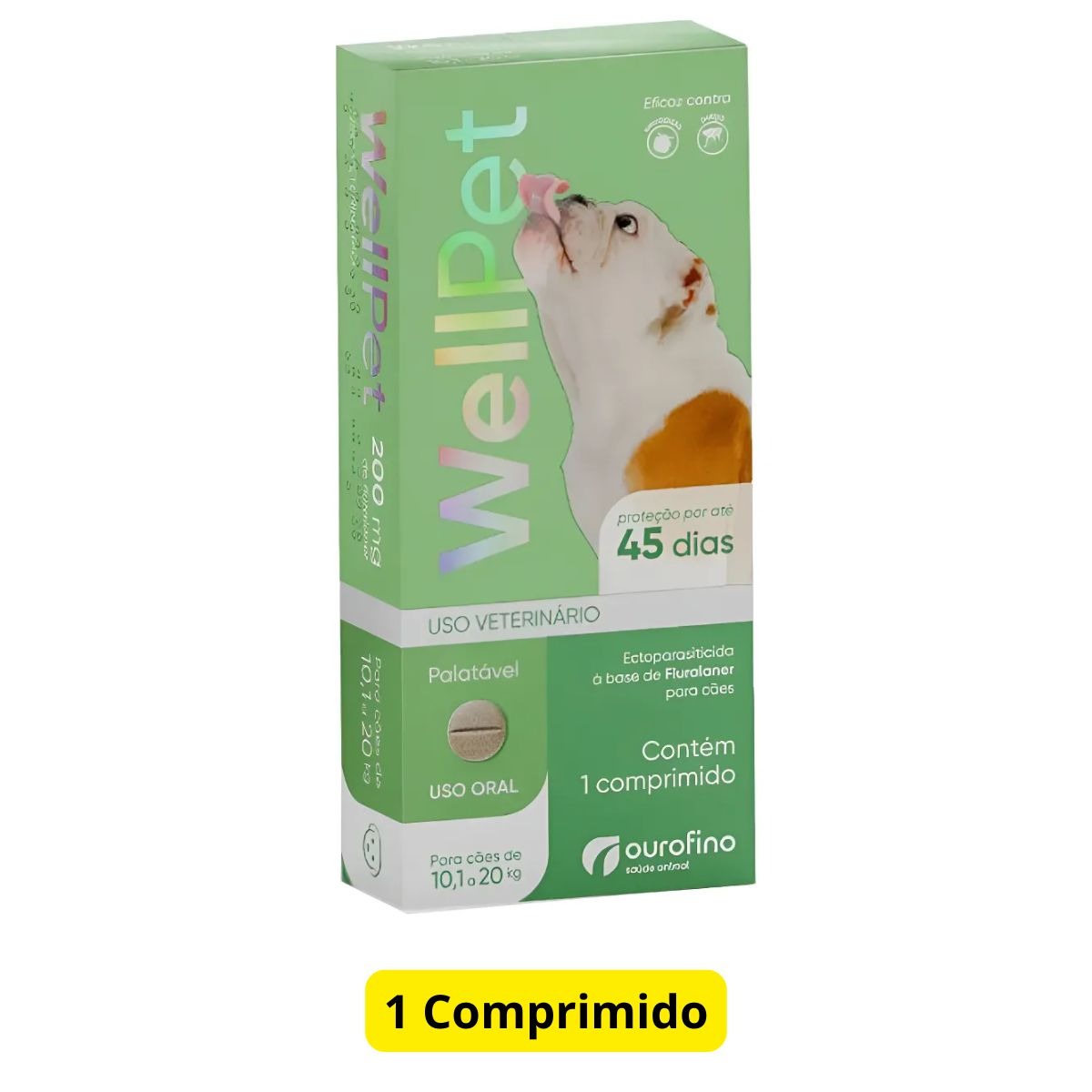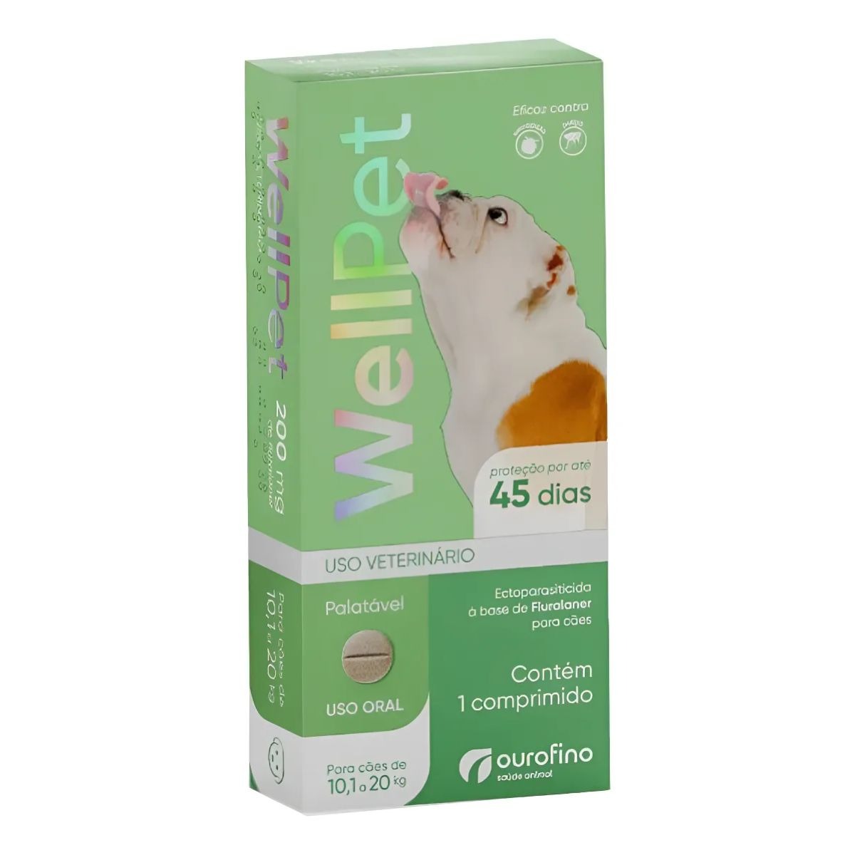 WELLPET 200MG – ANTIPULGAS E CARRAPATOS PARA CÃES DE 10,1 A 20KG – OUROFINO