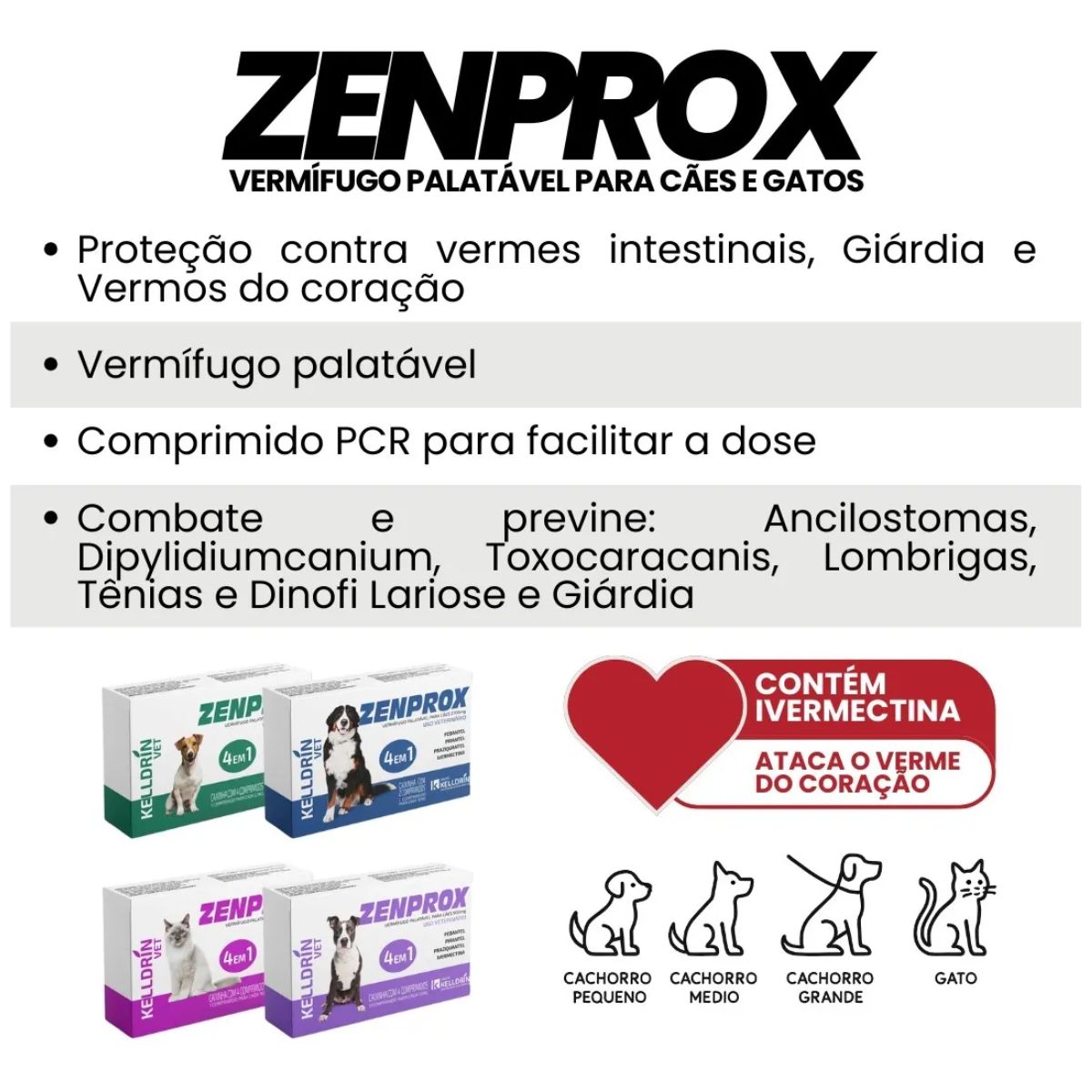 O Zenprox é um vermífugo de amplo espectro desenvolvido pela renomada Kelldrin, laboratório veterinário com décadas de experiência em saúde animal. Este medicamento oferece proteção completa contra os principais parasitas intestinais que afetam cães de pequeno porte.